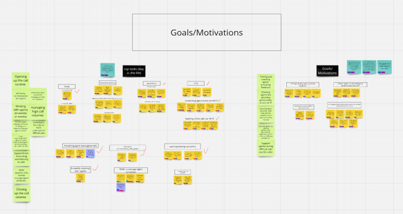 Synthesized findings in Miro using tagging, filtering, and affinity mapping.