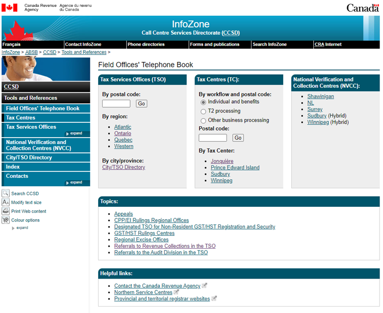 The Field Office Telephone Book (FOTB) is an internal site used by CRA call centre agents to look up mailbox and taxpayer-related contact information across Canada.